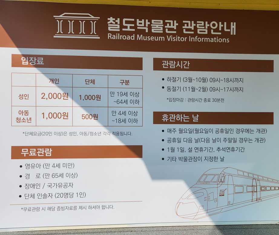 - 운전체험실: 실제 기관차 운전을 체험할 수 있는 시뮬레이터가 있으며, 500원으로 이용 가능합니다.