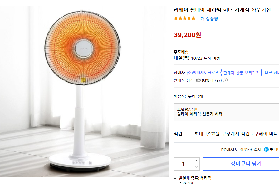 - 리웨이 웜데이 세라믹 히터 → 빠른 난방과 저렴한 가격
