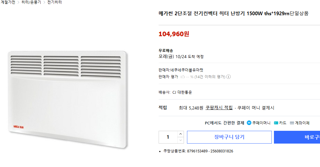 - 메가썬 전기컨벡터 히터 → 안정성과 무난한 성능