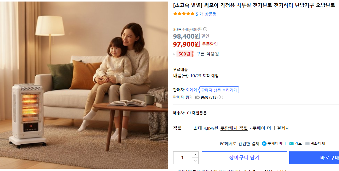 스마트폰 앱과 연동되어 전원을 켜거나 끄고, 온도 조절과 타이머 설정도 할 수 있어 편리합니다. 특히 바쁜 직장인이나 집에 들어오기 전에 미리 방을 따뜻하게 해두고 싶은 분들에게 딱 맞는 제품입니다. 가격도 10만 원 이하라 부담이 적고, 소비 전력도 효율적이라 ‘가성비 난로’ 대표주자로 꼽힙니다.