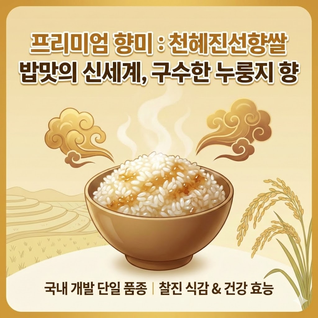 매일 먹는 밥이지만, 가끔은 평소와 다른 특별한 밥맛을 느끼고 싶을 때가 있습니다. 최근 프리미엄 쌀 시장에서 큰 인기를 끌고 있는 '천혜진선향쌀'은 밥을 짓는 순간부터 온 집안에 퍼지는 구수한 누룽지 향으로 많은 사랑을 받고 있는데요. 단순히 향만 좋은 것이 아니라 영양과 식감까지 모두 잡은 이 쌀의 비밀은 무엇일까요?