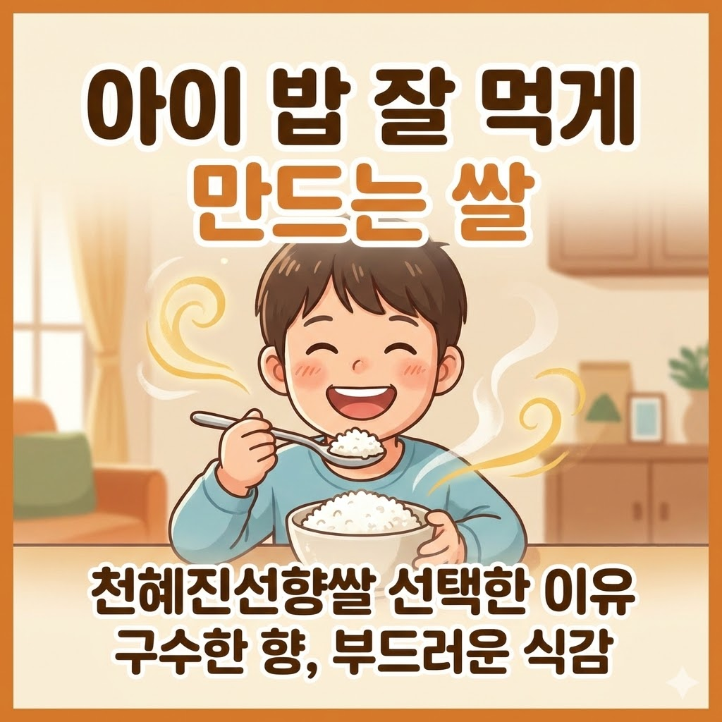 이럴 때 밥 자체의 맛을 올려주면 반찬에 대한 의존도를 낮추고 밥 먹는 즐거움을 알게 해줄 수 있습니다. 천혜진선향쌀은 바로 이 '밥 자체의 매력'을 극대화한 품종이라 아이들에게 특히 반응이 좋습니다.