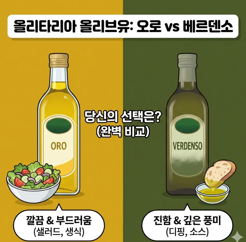 올리브유를 고를 때 '올리타리아(Olitalia)'라는 이름을 한 번쯤 들어보셨을 겁니다. 이탈리아 쉐프들이 가장 사랑하는 브랜드이자, 한국 백화점 식품관에서도 흔히 볼 수 있는 스테디셀러죠. 하지만 막상 구매하려니 '오로'는 뭐고, '베르덴소'는 또 뭔지 헷갈리시나요? 오늘은 올리타리아 엑스트라버진 올리브유의 특징과 대표 라인업의 차이, 그리고 실제 소비자들의 솔직한 후기를 정리해 드립니다.