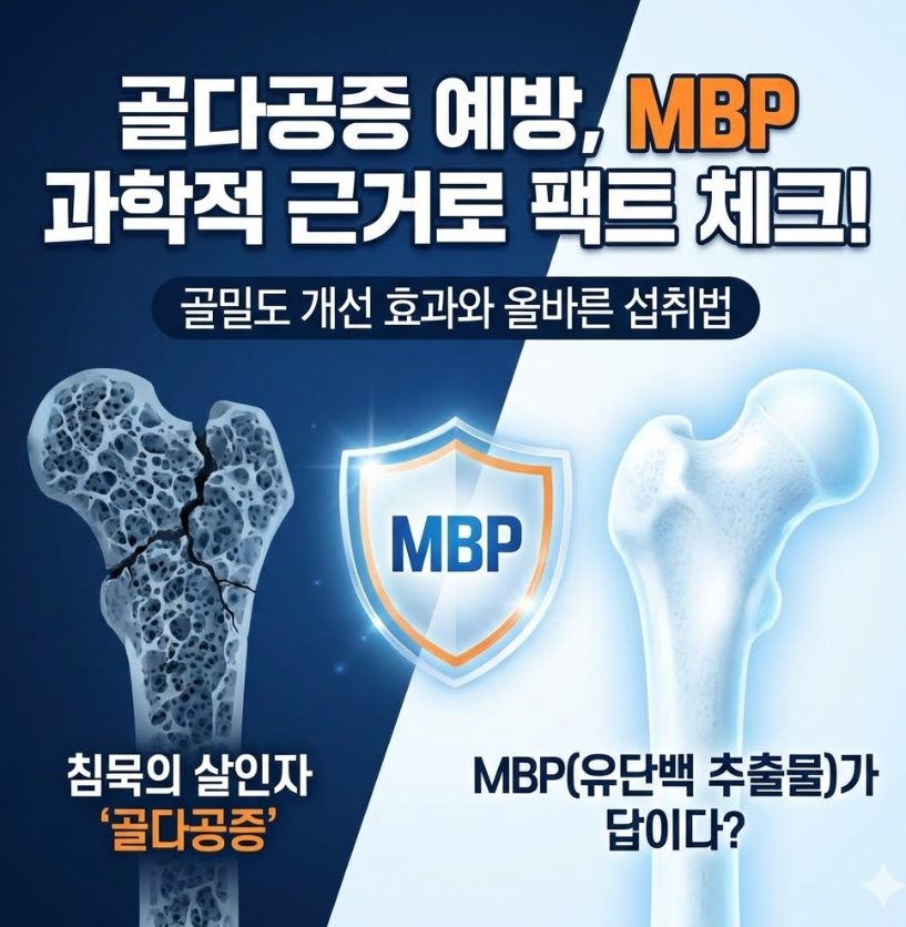 '침묵의 살인자'라고 불리는 질병들이 있습니다. 그중에서도 뼈 건강을 위협하는 골다공증은 특별한 통증 없이 진행되다가 작은 충격에도 큰 골절로 이어지기 때문에 더욱 무섭습니다. 최근 뼈 건강을 위해 많은 분이 찾고 계신 MBP(유단백 추출물)가 실제로 골밀도 개선과 골다공증 예방에 어느 정도 효과가 있는지, 과학적인 근거를 바탕으로 꼼꼼하게 분석해 보겠습니다.