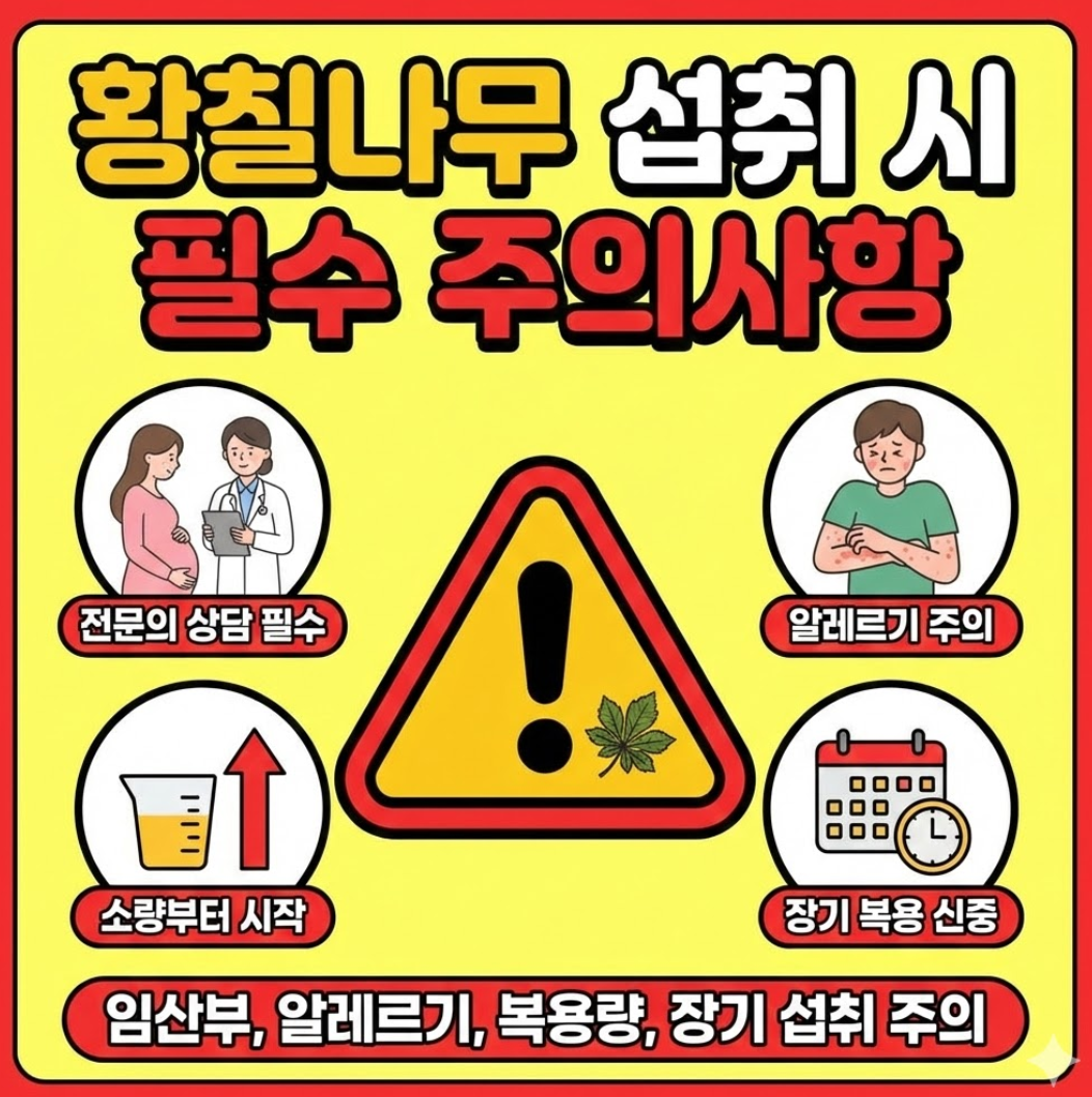 황칠나무는 분명 훌륭한 천연 건강식품이지만, '과유불급'이라는 말이 가장 잘 어울리는 약재이기도 합니다. 자신의 체질을 먼저 이해하고, 조금씩 천천히 몸에 적응시켜 나간다면 부작용 없이 황칠나무가 주는 활력과 건강을 온전히 누리실 수 있을 것입니다.