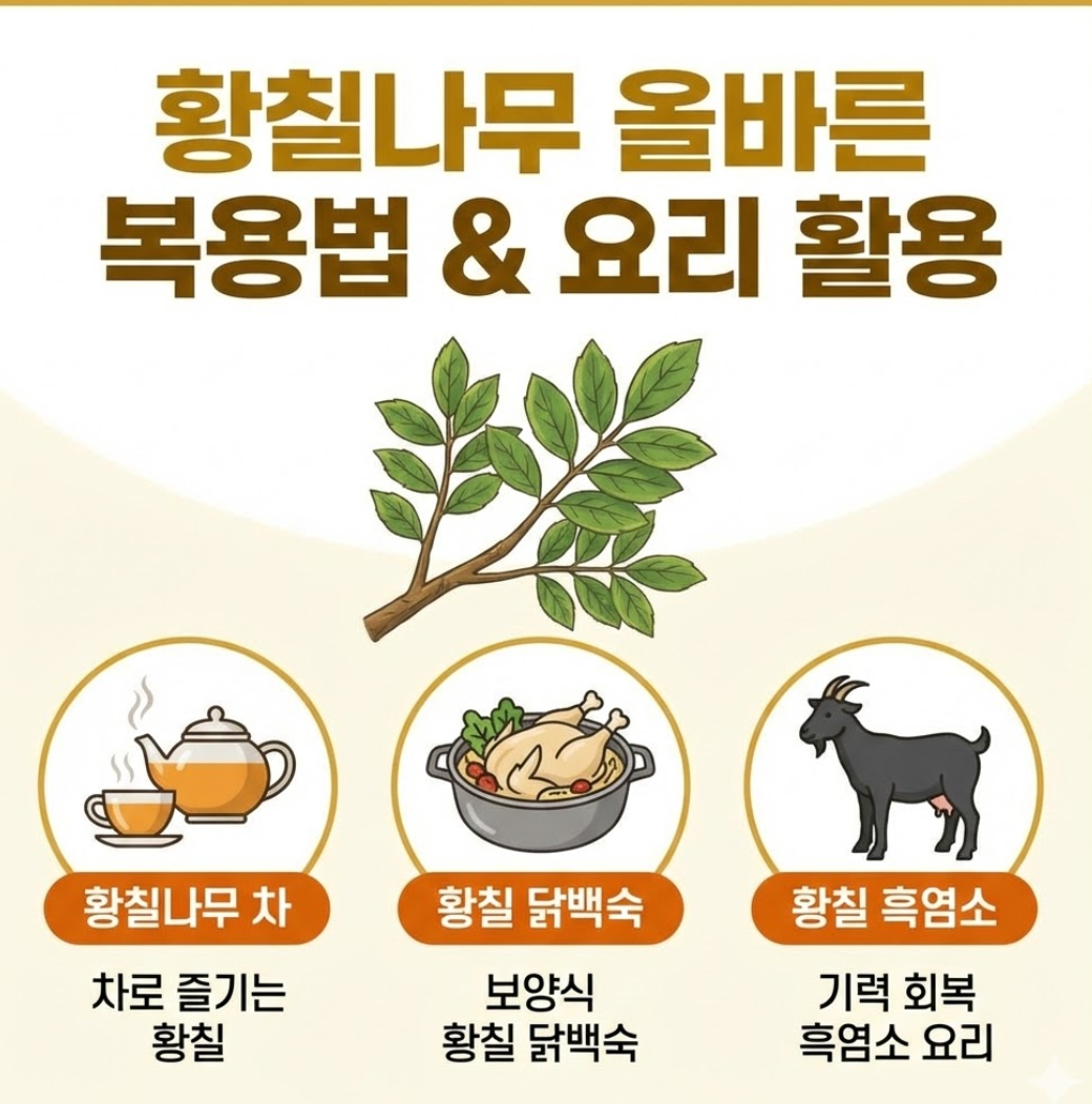 몸에 좋은 황칠나무, 구하긴 했는데 어떻게 먹어야 할지 막막하셨나요? 단순히 물에 끓여 먹는 것을 넘어, 황칠나무는 요리의 풍미를 살리고 영양 흡수율을 높이는 훌륭한 식재료가 될 수 있습니다. 은은한 안식향이 일품인 따뜻한 차부터, 보양식의 격을 높여주는 백숙 요리까지! 오늘은 집에서 누구나 쉽게 따라 할 수 있는 황칠나무의 올바른 복용법과 맛있는 요리 활용 비법을 전해드립니다.
