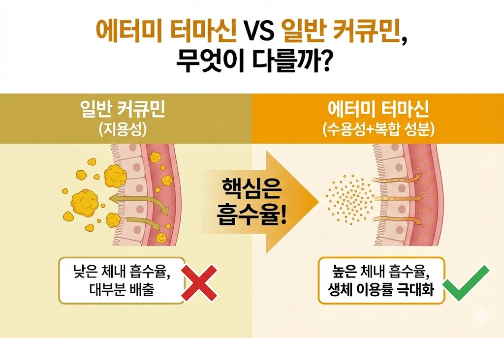 2. 핵심 원료 '터마신' vs '일반 커큐민' 전격 비교