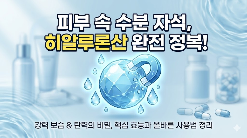 피부가 푸석거리고 속 당김이 심해지는 환절기, 가장 먼저 떠오르는 성분이 무엇인가요? 아마 많은 분이 히알루론산(Hyaluronic Acid)을 떠올리실 겁니다. 자기 몸의 1,000배에 달하는 수분을 끌어당기는 '수분 자석' 히알루론산은 이제 화장품을 넘어 먹는 영양제로도 필수 성분이 되었는데요. 오늘은 히알루론산의 핵심 효능과 바르는 것과 먹는 것의 차이를 완벽하게 정리해 드립니다.