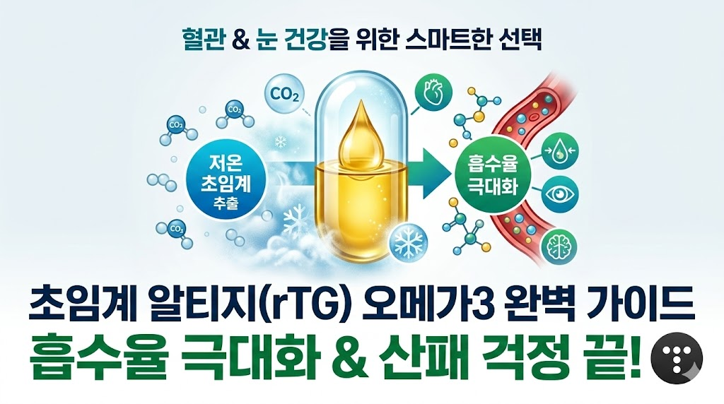 오메가3는 이제 양보다 질의 시대입니다. 내 몸에 더 잘 흡수되고, 산패 걱정 없는 초임계 알티지 오메가3를 선택하여 혈관 건강을 스마트하게 관리해 보세요. 오늘 정리해 드린 기준이 여러분의 건강한 영양제 쇼핑에 큰 도움이 되길 바랍니다!