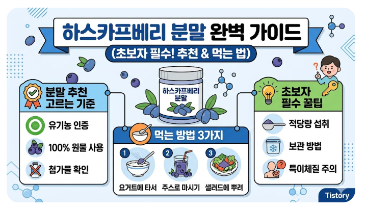 description: 건강 관리를 위해 하스카프베리 분말을 처음 접하시는 분들을 위해, 좋은 제품을 고르는 기준부터 맛있고 효과적으로 먹는 다양한 활용법을 자세히 알려드립니다.