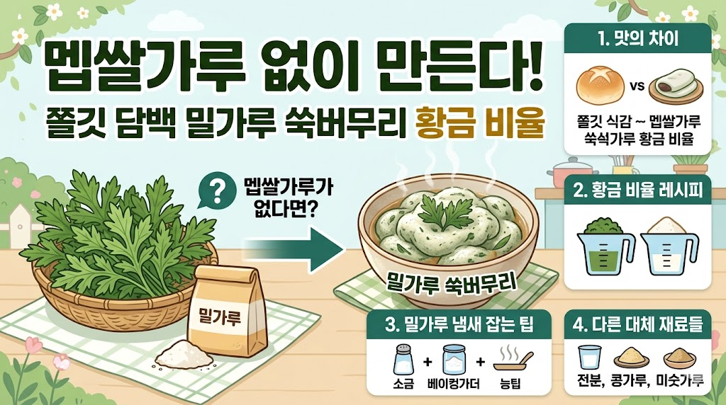 향긋한 봄 쑥을 한 바구니 캤거나 선물 받았을 때, 가장 먼저 생각나는 요리가 바로 쑥버무리입니다. 그런데 막상 만들려고 보니 집에 멥쌀가루가 없어 당황했던 경험, 한 번쯤 있으시죠? 쌀을 불려 방앗간에 가기엔 너무 번거롭고, 마트까지 가기도 귀찮을 때 우리에겐 아주 훌륭한 대안이 있습니다.